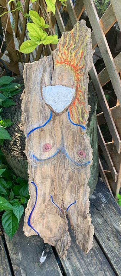 © Donna Joy Kerness: acrylic and metallic paint on dead tree bark